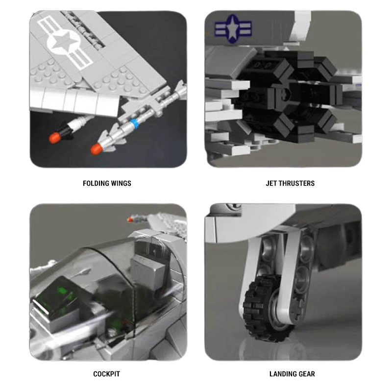 The F16 Tactical Fighter Jet is a large scale military aircraft building block model designed for advanced builders and display-focused collectors. This build emphasizes accurate proportions, mechanical detailing, and structural realism inspired by modern multirole fighter jets. Designed primarily for display, it delivers a rewarding construction experience with strong visual presence and technical depth.